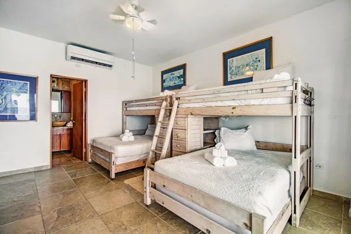 Let yourself be transported upon entry into this grand home located in Culebra, Puerto Rico, known for its crystal-clear waters, swimming areas, and diving sites. This sunny and spacious 5-bedroom, 6.5-bathroom home boasts ocean views from every room, as well as a terrace, balcony, and infinity pool! The stunning property is approximately a 10-minute walk to the beach and is very close to town and restaurants. The new horse stables have never been used and can be converted into a suite with a bathroom and kitchenette. The property is serviced by a septic tank and features AC in all rooms and living areas.\r\n