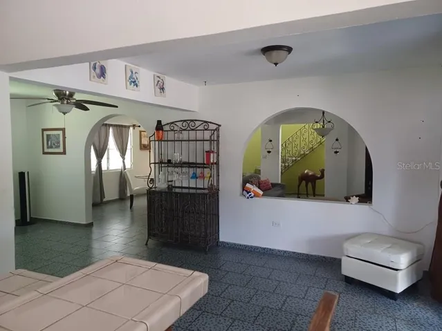 Stepping through the front door you will find a spacious, open living area. Living room, dining and kitchen flow together with arched doorways and windows to complete the ambience. AC throughout. One bathroom downstairs and one up. A spiral staircase leads upstairs to the three bedrooms. There is an extra small balcony off of the foyer on the second level where you can catch the breezes and enjoy the view. Beautifully furnished, and furnishings are negotiable. Well maintained inside and out! This approx. 2,000 squarefoot remarkable concrete 3 BR/2 BATH single-family residential property on approximately 1/3 of an acre is Titled and is zoned for Residential Use.