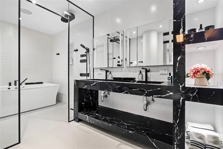 The master suite includes spectacular custom made Italian style cabinetry, a spacious walk-in closet and a master bathroom complete with a dual vanity, Kohler’s most recent luxury dual shower system and a jacuzzi tub. The second master also features a bathroom with a dual vanity. \r\n