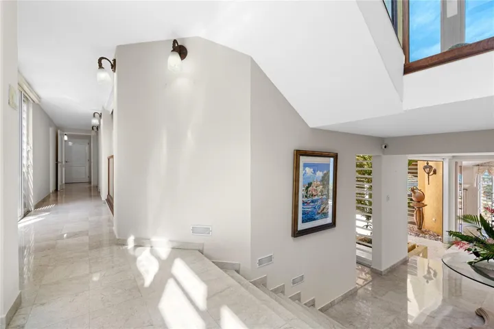 Perched atop the lush, vibrant landscape of Palmas del Mar, this distinguished estate stands in a league of its own, occupying a supremely privileged location that commands sweeping views of the crystalline ocean, majestic mountains, and the sprawling resort below. Designed as an idyllic setting for both grand festive gatherings and tranquil retreat living, the estate’s architecture masterfully embraces its surrounding natural beauty through its use of oversized windows, broad terraces, meticulously landscaped garden patios, and an enchanting central courtyard. Upon entering, guests are greeted by a captivating open-air garden, setting the tone for the exquisite interior that lies within.