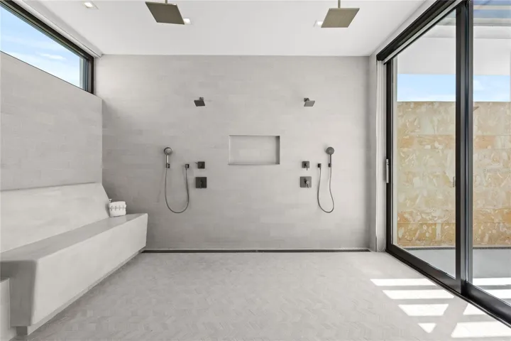 Inside, the estate unfolds with grandeur, featuring a thoughtful layout designed for both comfort and luxury. On the main floor, you'll find three beautifully appointed bedrooms, each with expansive windows that invite natural light and provide private terraces. Upstairs, two additional bedrooms are complemented by the lavish primary suite, which spans an entire side of the second floor. The primary suite offers ultimate luxury with an oversized private terrace, a spacious walk-in closet with an island, and a spa-inspired bathroom, complete with an outdoor shower for a resort-like experience. Across from the primary bedroom is a private office, providing a serene space for work or relaxation.\r\n
