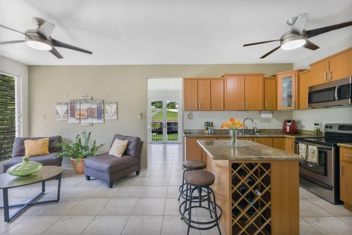 On the lower level it has a storage area, bedroom, a kitchenette and full bath. Total square footage is 3,459 with 1,625 s/f of outdoor living space which includes terraces, balconies, a large double carport plus a spacious gathering area. The main home is accessed through a stairway at the side of the carport.\r\n