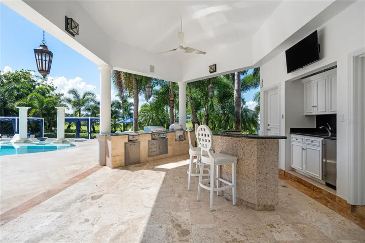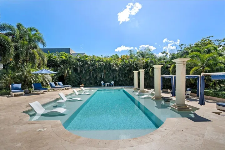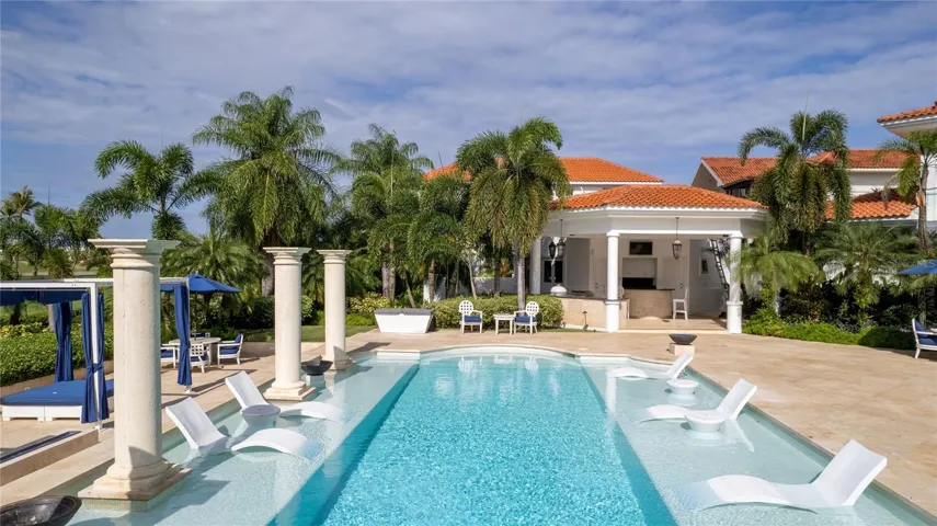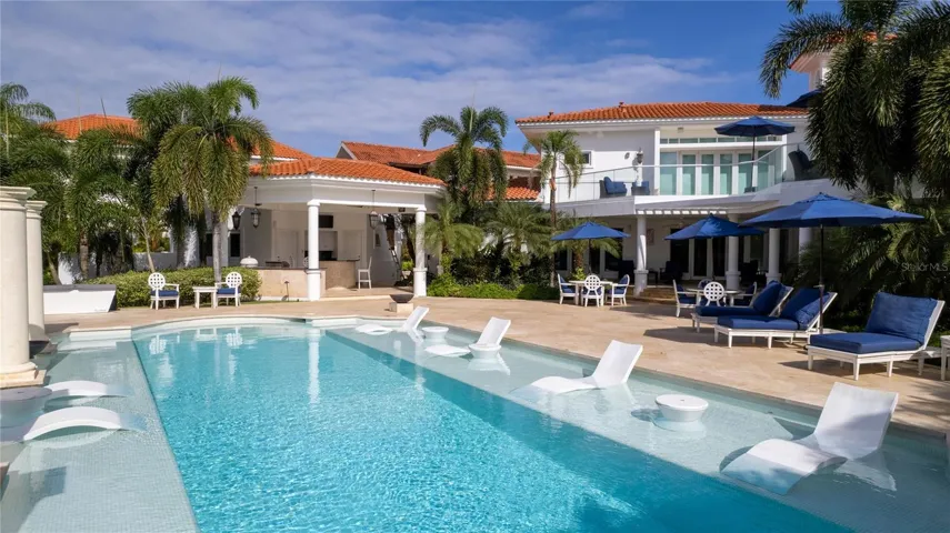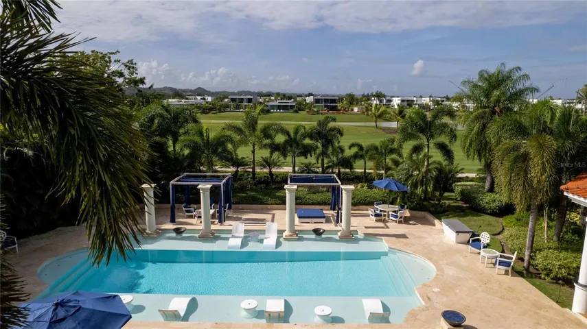 This custom-built property is situated on a sprawling 3,054 sqmt lot with views of the new West TPC Course at Dorado Beach Resort. Boasting approximately of 7,000 sq. ft. of indoor/outdoor space, the home offers a harmonious blend of elegance and modern comfort, perfect for both relaxing and entertaining. It features four spacious bedrooms, including a junior suite on the first floor and three additional bedrooms on the second floor. The master suite is exceptionally ample, featuring two large closets, a big bathroom with a soaking bathtub, and direct access to the second-floor balcony, offering views of the golf course. The home also includes a versatile room currently used as a gym, which can easily be adapted to suit other purposes such as a playroom, hobby space, or additional office. There is also a dedicated office space and a private movie theatre, providing ample room for convenience and entertainment. There are seven fully renovated bathrooms and two powder rooms to accommodate the needs of a modern lifestyle.\r\n