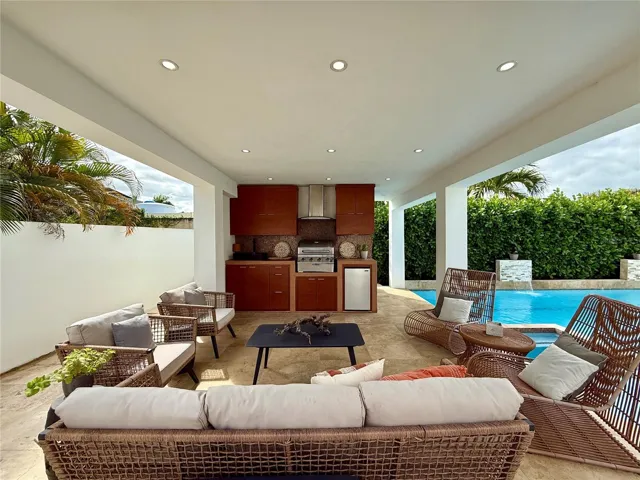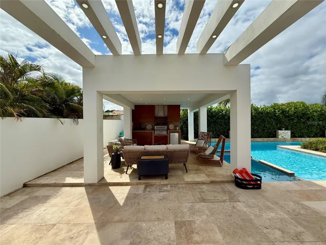 Step outside to your private backyard oasis, featuring a swimming pool with a lap pool, a gazebo with an outdoor kitchen, a half bathroom, and a convenient outdoor shower, ideal for entertaining and relaxation.\r\n