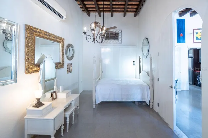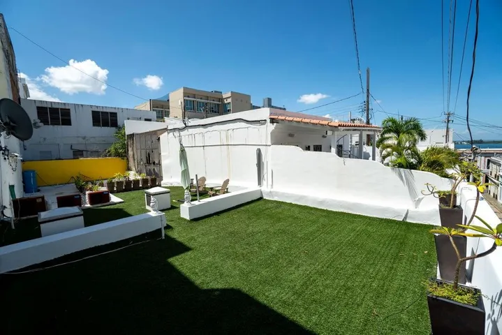 Experience the Old San Juan lifestyle. This spacious and cool residence is located in one of the most quiet but central streets of the old town center. It has 2 bedrooms, 2.5 bathrooms, a space for a family room or office, kitchen with quartz countertops, dining room, living/family room, interior terrace with a mini pool and a spiral staircase that leads to a large rooftop with views of the San Juan Bay. Sold with or without furniture. One parking space at Cochera Parking Garage included.
