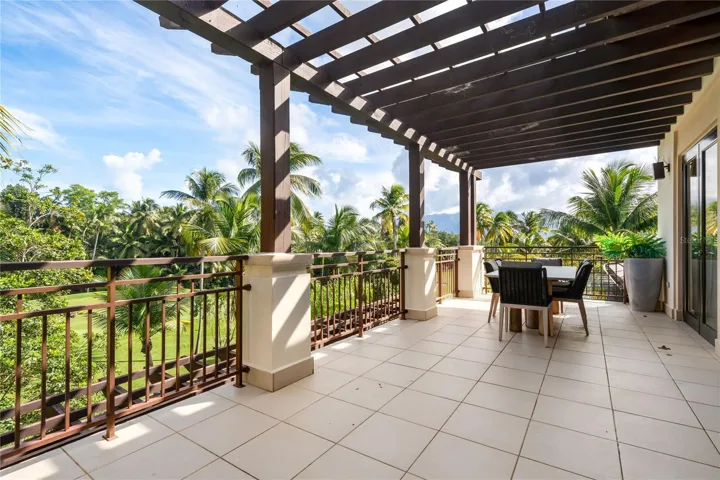 Outdoor living is seamlessly integrated into the home's design, with multiple terraces providing ideal spaces for relaxation and alfresco dining. The main terrace overlooks meticulously manicured gardens and offers glimpses of the nearby golf course, enhancing the sense of tranquility. Residents of Las Verandas enjoy access to a range of world-class amenities within the Bahia Beach community. The resort boasts a Robert Trent Jones Jr. designed golf course, the St. A beautiful Spa, and fine dining options. Outdoor enthusiasts can explore nature trails, engage in water sports, or relax on the pristine beaches. The property's proximity to these facilities ensures a lifestyle of convenience and leisure.