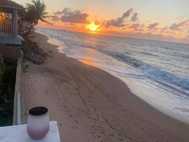 Nestled in the stunning Barrio Rio Grande Playa in Aguada, this beachfront multi-unit house offers a unique blend of comfort and investment potential. The main unit features two spacious bedrooms and one bath, with an open kitchen and living/dining area perfect for family gatherings. The guest bedroom boasts a double entry door, leading to an adjacent room that can easily be transformed into a third bedroom. Currently set up as a small studio apartment, it has its own private entrance and walkway, adding to the property’s charm. The large terrace on the ocean side provides a perfect setting for celebrations, yoga sessions, dance classes, or even conferences, all with private steps that lead directly to a beautiful swimming and water sports beach. Upstairs, the bright and spacious studio apartment features a roofed balcony with a breathtaking ocean view, and there’s ample room to expand the property further. The roof has been recently repaired and sealed with a 10-year warranty for added peace of mind. A four-vehicle carport with two gates, one automatic and one manual, provides convenience and security. All three units have separate entrances and direct access to private beach stairs, making it an excellent income property for those seeking to rent or enjoy as a personal retreat. As Is, with flexible financing options. Pre-qualification required, and the property comes with a clean title. This is your opportunity to invest in a stunning location with endless potential!