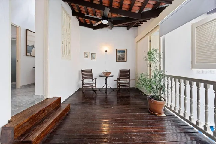 Upstairs, you’ll find three spacious air conditioned bedrooms, three full bathrooms, and a laundry room. The two primary bedrooms feature custom closets, restored original wood floors, and double doors that open onto Old San Juan’s iconic balconies, offering picturesque views of the historic streetscape. An additional open balcony overlooks the indoor garden, providing the perfect spot to unwind. The property includes a full-power generator and a water cistern for added convenience and reliability.\r\n