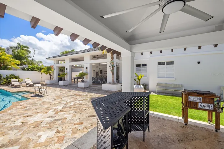 +"PublicRemarks": "This captivating architectural masterpiece is located at Torrimar Alto. Exclusive gated community located in Guaynabo. The contemporary design home sits in a lot of 1,150 square meters. The impressive outdoor features a stunning covered terrace, pool with jacuzzi, BBQ with gazebo area. Ideal home for entertaining family and friends. This house consists of 3,730 sq ft, with high ceilings and open lay out design. Marble floors throughout, exquisite finishes. Spacious living room, dining room, family room, and a gourmet kitchen with breakfast area. The gourmet kitchen, include top of the line appliances, two refrigerator, electric stove with hood, dishwasher, conventional and microwave ovens. Laundry area and a garage for two cars. This home offers a nice gym with an ensuite bathroom, also to be used as an office, playroom or guest room. Six bedrooms, and four bathrooms and one half bathroom. A luxury master suite with a private "en suite" bathroom and a spectacular walking closet. Two junior suites with ensuite bathroom and a walking closet. This home includes a 40 k diesel Generator, two 600-gallon water cisterns, intelligent home, security system, patio light system, pool water heater, 7 a/c units, washer and dryer, security door and windows, garage door, irrigation system Luxurious amenities exclusively for Torrimar residents enjoyment: 24/7 security, activity center and playground. Conveniently located, close to private schools: fine dining restaurants, shopping centers and other places of interest. Don't miss this opportunity. For a private showing call us today."
