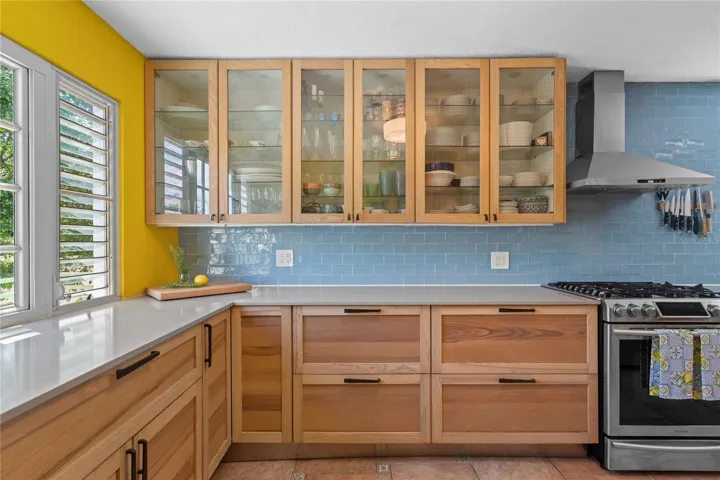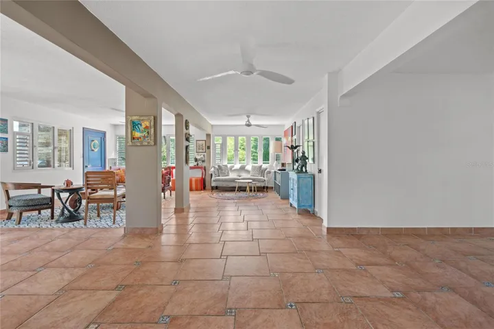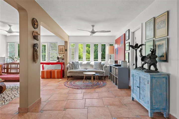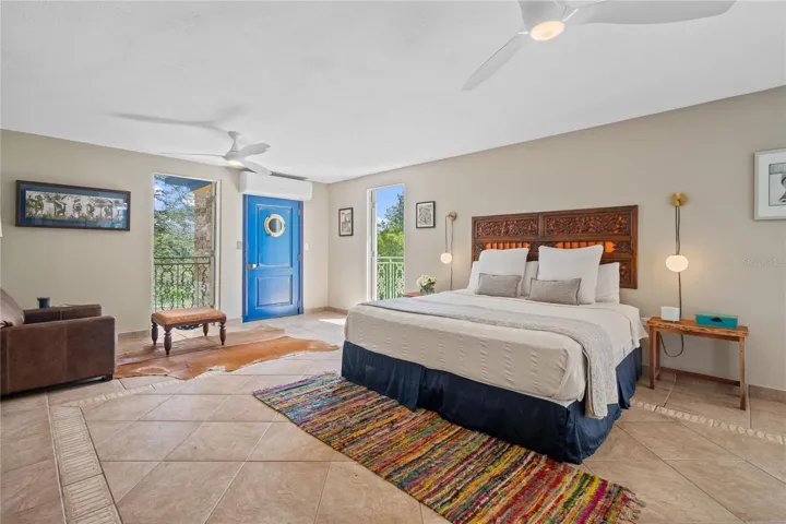 Hurricane-rated windows are installed throughout the home, including both Valcor and original Air Master units, including a large panoramic window in the stairwell, as well as additional windows in the kitchen and guest bedroom. The kitchen features custom cabinetry, granite countertops, and new appliances, while two bathrooms are fully renovated with modern fixtures. \r\n