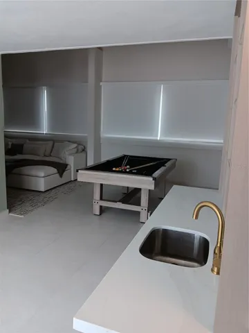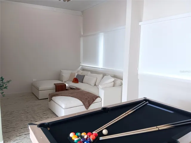 Covered terrace with great family area featuring a billiard table, wet bar, and dedicated office space. \r\n