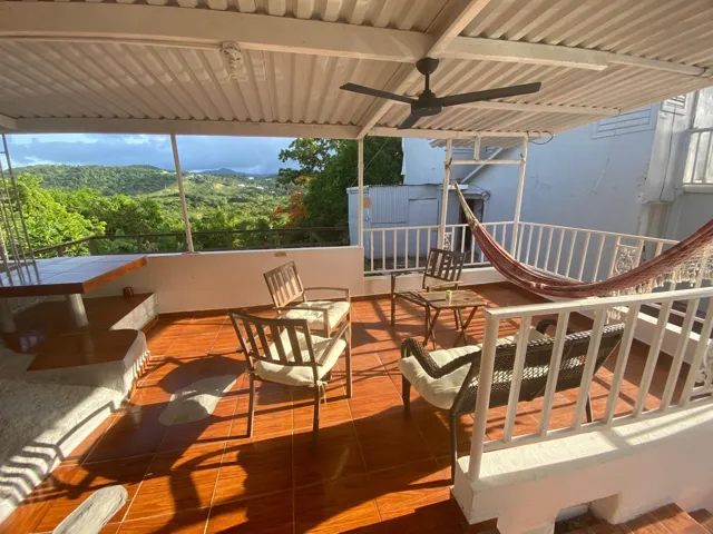 +"PublicRemarks": "Sandwiched between the Atlantic and El Yunque Rainforest this 15,195 sq ft residential property luxuriates in nature with with 360° sweeping views of the ocean out front and the rolling hills of El Yunque Rainforest out back, with a total 4,530 sq ft interior space. Central location close to everything, it’s perched atop the authentic eighborhood of Puerto Rico, closest to los Kioskos de Luquillo full of Borinquen restaurants, bars, and shops, and just 4 blocks from some of the best beaches on the island, including the Blue Flag Beach el Balneario Monserrate. It’s also just five minutes from Luquillo’s town center’s great local restaurants and major grocery, drugstore, and fast food chains. All that and in the other direction but a 4-mile drive to the entrance of El Yunque National Park. Our 5 bedroom 3180 sq ft main house features 3 fully renovated bathrooms and 2 kitchens, sea views from the 10-foot ceiling main salon and living rooms, and the elevated dining room with lounge area and lower unit's kitchen nook and dining area as well. Outside we have a front balcony with 2 hammocks, a 195 sq ft covered patio with hammock, a service area, 3 shaded slab benches, a tree swing and hammock area, a 630 sq foot uncovered raised patio area (perfect for staging performances, photoshoots, weddings, and pop-up concerts) as well as a 500 sq ft BBQ ready area, a 130 sq ft tiled mezzanine platform, a 432 sq foot lawn with an in-lawn fire pit, and an outdoor shower. The builder designed a masterful scheme of levels throughout these structures to accommodate and artfully incorporate boulders into the design throughout the property. The home’s lush jungle-like lower garden, replete with mango, avocado, papaya, banana, cacao, and coconut trees surrounding an enormous majestic boulder, provides the foreground of the view of the lush rolling hills and cloud forest peaks of El Yunque. It’s magical. Come see for yourself! This home is a private retreat that's close to all the attractions but feels like a world away."
