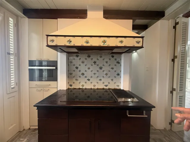 The gourmet kitchen is fully equipped with top-of-the-line Miele and Sub-Zero appliances, countertop stove, oven, dishwasher, and refrigerator.\r\n
