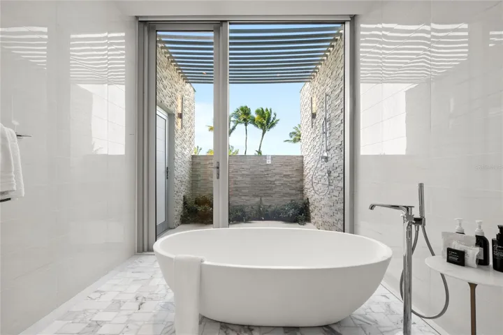 The primary suite serves as a personal retreat with dual custom closets and a spa-inspired bath. A dedicated wellness space is prepped for sauna, steam, or cold-plunge installation. Three additional en-suite bedrooms—each with bespoke storage—ensure guests enjoy hotel-level privacy.