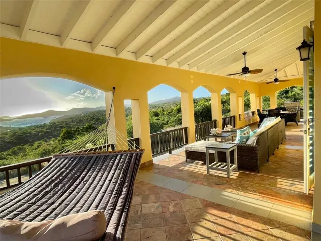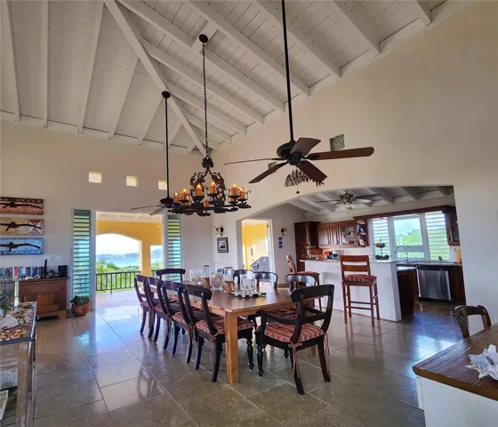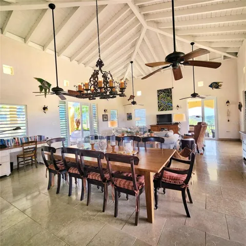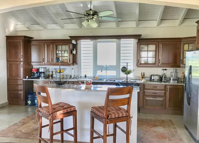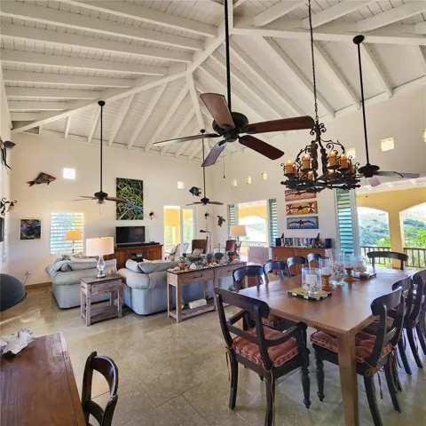 +"PublicRemarks": "This extraordinary 5 acre property celebrate coastal living with its three-building layout, showcasing the timeless elegance of Caribbean architecture with its soaring high ceilings and distinctive 4-pitch roofs. The generous main structure anchors the compound with its thoughtful two-level design. The upper level flows effortlessly from the kitchen through an elegant light-filled living room, where glass doors surround the structure, perfectly framing the island's vibrant tropical colors while inviting refreshing cross breezes to flow naturally throughout the home. On the lower level, two bedrooms Jack-and-Jill style, provide comfortable accommodations with shared convenience and privacy. The magnificent main porch offers ample space for large gatherings and dining alfresco, while intimate bedroom porches create perfect settings for romantic sunsets and quiet contemplation.\u{A0} The dedicated master suite structure provides ultimate privacy, where you can wake up to ocean views right from your bed. The third structure houses two additional bedrooms, each opening onto private porches that offers intimate spaces for morning coffee or evening relaxation so your visitors will enjoy the perfect balance of comfort and privacy."