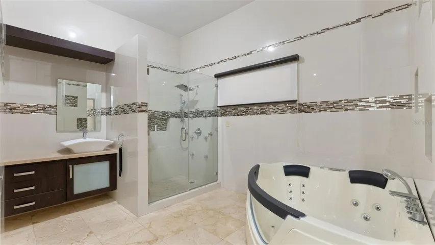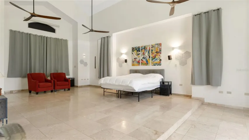 Massive primary suite ~40’ x 20’ with approx. 26-foot ceilings – large enough for a full bedroom set, sitting area, office corner and more\r\n