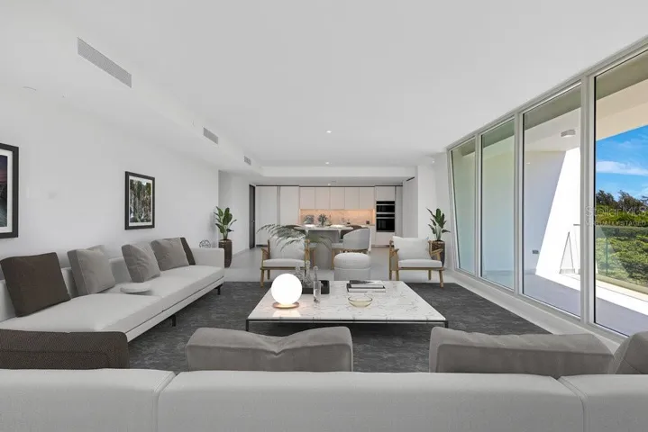 Designed with sophistication and ease in mind, the residence features 9’6” ceilings, floor-to-ceiling hurricane resistant glass everywhere, and a loft-inspired floorplan, where the shining star is the customized open Italian Boffi kitchen outfitted with top-of-the-line GE Monogram appliances. Every bedroom features an en-suite bathroom, the enormous primary bedroom offers its own private terrace, and the den is a perfect flex room for guests or peaceful office use.\r\n