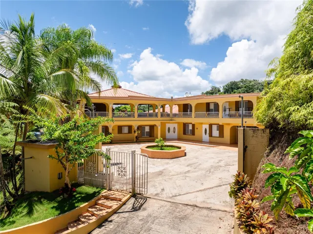 Set on a lush hillside in the mountains of Lares, Puerto Rico, this spacious property offers a unique layout and endless possibilities for customization. With 8 bedrooms, 6 full bathrooms, and 2 half baths spread across two levels, it provides generous space for residential or rental use. The interior features high vaulted ceilings with wood accents, an open living area, and a functional kitchen, while the exterior includes scenic mountain views, a wraparound balcony, and a rustic wooden structure known as "La Tiendita de Don Cando." \r\n