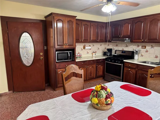 The home also includes a separate entertainment/sitting area on the side of the house - perfect for family cookouts, relaxing outdoors, or hosting gatherings. The private driveway is extra-large and can comfortably accommodate up to 10 vehicles, providing ample parking for residents and guests alike.