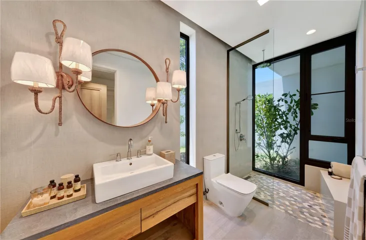+"PublicRemarks": "No expense spared on this true to form Caribbean contemporary new construction, sitting blissfully at the eastern entrance to the rainforest and within the gates of Bahia Beach Resort. Completed in 2024, 23 Las Estancias stands a testament in true adoration to architectural intention and sophisticated purposeful interior design. Sitting on just over 1/2 acre, each curated detail resonates throughout this 3 bedroom, 3 full bath and 2 partial bathroom single level estate. 20+ Ft entry ceilings pull all of the natural light from the floor to ceiling glass doors, with broad facing western exposure to the lake, mountains and lush tropical backdrop that only the El Yunque rainforest can afford. Brushed blond wood palettes delicately accent the pinnacle of each room's ceilings, pulling in natural textures to the all concrete structure. Limestone floors add a cool tonality to the juxtaposition of ultra green foliage enveloping the home's elevated exterior facade landscaping. Cascading honed marble countertops highlight this double sized gourmet kitchen, featuring a gratuitous 19x19 footprint, and cornered by 10+ ft glass doors that open fully to the property’s magical oasis. Privacy and purpose reign here, where your outdoor summer kitchen equipped with full gas range, sink and bar moves fluidity towards your zero edge swimming pool, which is adjacent to your outdoor shower and bath, dining, sunning areas and hidden entertaining spaces. Guest suites, each highlighting the exotic nature of living within the resort, feature walk-in closets, ensuite baths and full length picture windows encasing the spaces with fresh sunkissed natural light. The primary wing serves as an homage to refined peace. Double entry doors swing inwards towards the 4 post california king bed, masterfully angled towards the estate’s western outdoor living, where hints of running water from the lake abutting the property’s line, and coconut bearing palms sway off in the distance, to this coast's constant melodic breezes. A basin tub swathed in the greenery exposed by the large bay windows, and indoor/outdoor shower textured in raw stone elements, and an 11' 11” X 13' 11” temperature controlled boudoir and closet round out the home's impeccable design. Warm neutrals kiss every element of design here, where Lutron lighting and shades throughout, a fully off grid solar installation on roof and numerous other refined details, allow the owner the ease of purposeful living. 23 Las Estancias serves as a culmination of vision and passion elegantly aligned in both presence and form. The only of its kind, a true 1 of 1."