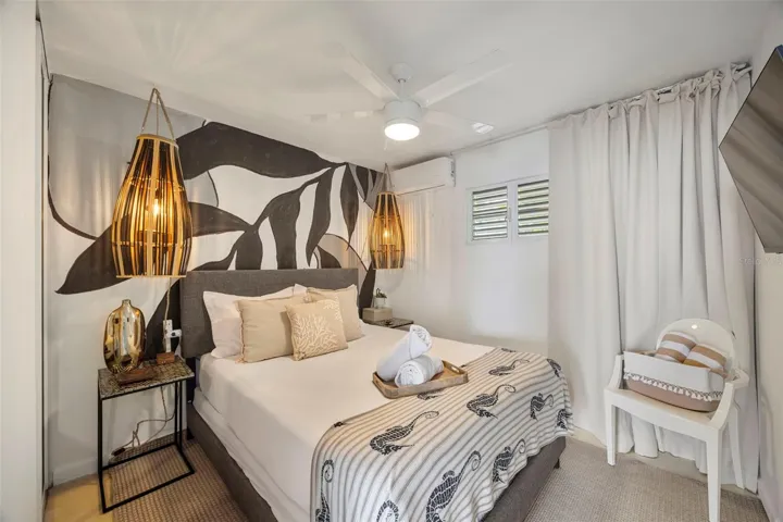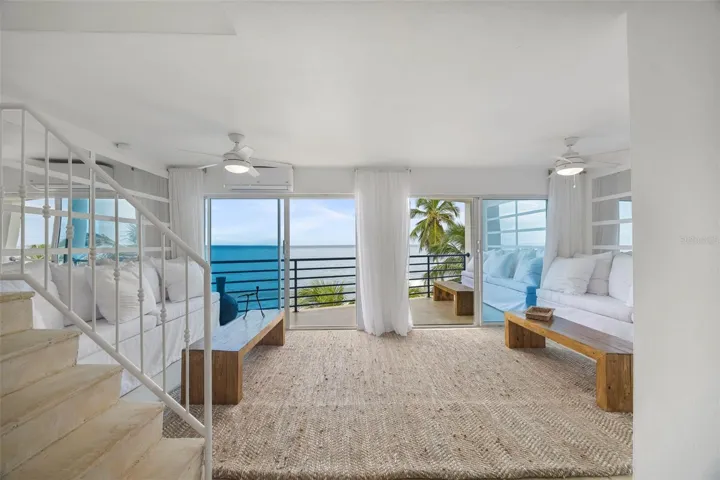 Imagine stepping onto the rooftop terrace of your dreams! A private sanctuary suspended above the beach, where design, nature and indulgence meet. Welcome to the penthouse at the Eco Resort in Barrio Carrizales, Aguada. This 2 story, 4 bed, 3 bath apartment is the only unit in the complex with access to the over 2,000 sf rooftop that has been professionally decorated & renovated. This outdoor haven is an entertainer's dream; including a covered outdoor kitchen with dining table, a lounge area perfect for soirées under the stars or a movie night on the big screen projector. During the day you will enjoy ocean views of the beaches of Rincon, Aguada and Aguadilla. Walking into the penthouse you'll be greeted by the newly renovated kitchen that opens up to the living room allowing ocean views from almost every angle. Stepping onto the balcony from the living room you're greeted by an awe-inspiring vista of the beach and reef below. A perfect spot to curl up with a morning coffee or unwind with a cocktail by the shimmering night lights. Upstairs you'll find 3 beautifully decorated bedrooms, 2 bathrooms and another living room that can easily be converted to another sleeping area. The total interior square footage is 1,433 with ceiling fans and inverter split ACs in almost every room. This penthouse is completely turnkey and includes all furniture and appliances, plus an oversized reserved parking space big enough for 2 compact cars with in the gated parking lot. The HOA is only $240/month and taxes are approximately $3,160/year.\r\n