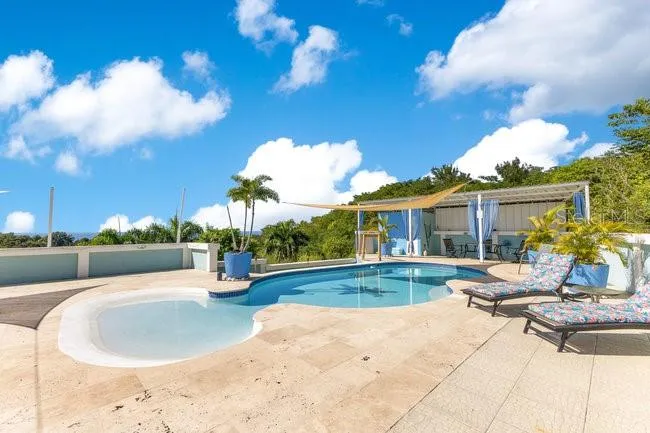 +"PublicRemarks": "Welcome to Villa Azul! This is an excellent opportunity to have it all! Privacy, ocean & sunset views, pool and land. A truly, spacious & dynamic compound that is submerged in nature and being sold with nearly 12 cuerdas of beautiful surrounding land. Abundant in exotic bamboo, various mature fruit trees including avocados, apricots, bananas, breadfruit, mangosteen, cinnamon, dragonfruit, mangos and more! Located in Barrio Ensenada in Rincon and only minutes from town and beaches. The main home offers 3 beds with 2.5 baths along with an open & light filled kitchen/living/dining room combo that extends to an extra-large, beautiful balcony. Kitchen has stunning granite countertops and stainless-steel appliances which make for a great layout. There is a separate laundry room that also doubles as a pantry/ additional storage too. The backyard is an oasis waiting for you. The gorgeous, beach-entry pool is surrounded by coralina stone and allows plenty of room for all to enjoy. The pool area is perfect for entertaining and relaxing and has its own bathroom and covered area to unwind. The lower apartment has its own entrance and bodes a full kitchen, full bathroom and has its own private laundry in back. The lower level also has 2 additional storage areas perfect for yard equipment, surfboards and even a possible office! The home has a backup generator, a cistern and a well too. There is also a brand new solar hot water heater that was installed Nov 2024. Qualified buyers come take a look at this beautiful property today!"
