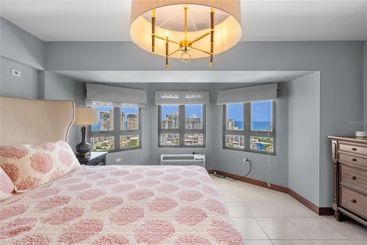 The living and dining areas are anchored by a remodeled kitchen featuring rich wooden cabinetry, granite countertops, and brand-new appliances. Large windows flood the space with light and frame panoramic views that extend across San Juan and out to the Atlantic.\r\n