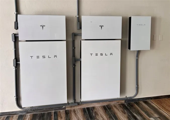 Sustainability meets sophistication with solar panels, three Tesla Powerwall batteries, and two water cisterns, ensuring energy efficiency and self-sufficiency.\r\n