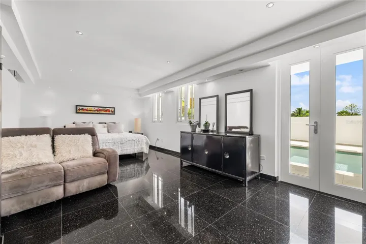 Elegant details and select furnishings enhance its luxurious ambiance, including a fountain sculpture, decorative lighting fixtures in the living, dining, and family rooms, three bedroom TVs, underground trash bins, pool cleaning robot, washer, and dryer, among other features.\r\n