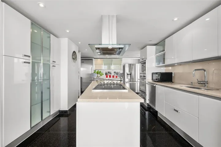 The gourmet kitchen comes fully equipped with top-of-the-line appliances, including a freezer, wine cooler, ice maker, microwave, cooktop, oven, hot drawer, and dining set . The property also includes 7 air conditioning units, a 12KW power generator, 600-gallon water cistern, on-demand water heater, and a two-car garage with storage area.\r\n