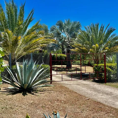 Set on over two acres of beautifully landscaped grounds, the property is a botanical paradise cultivated over decades by its current owners — both expert landscapers. From the moment you pass through the gated entrance, you're transported into an extraordinary world rarely found elsewhere. The gently curving driveway winds through majestic elephant-sized boulders, rare tropical plants, stately palms, and fruit-bearing trees.\r\n