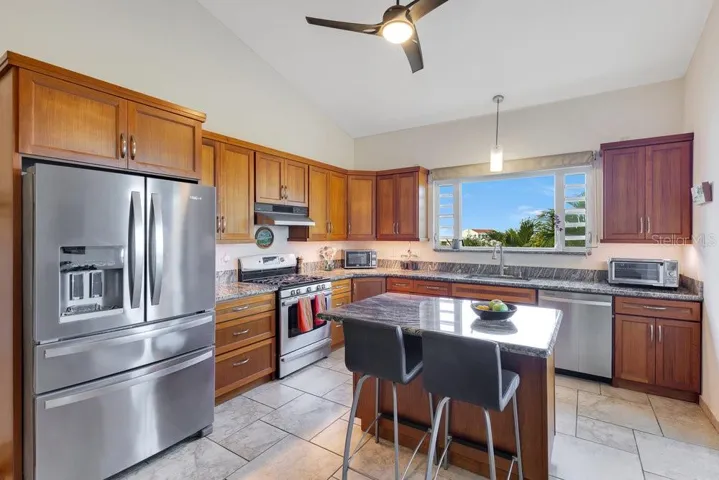 +"PublicRemarks": "Experience the epitome of luxury coastal living in this breathtaking seaside retreat, where elegant design meets natural beauty. Nestled above an exclusive stretch of coastline, this estate offers amazing ocean views, beach access within 200 meters, and a seamless indoor-outdoor lifestyle tailored for relaxation and refined entertaining. The property features expansive open-plan living spaces bathed in natural light. The expansive open hallway flows effortlessly into the open living and dining room. A gourmet chef’s kitchen is outfitted with top-tier appliances, custom cabinetry, and elegant stone countertops. Just off the kitchen is the back terrace perfect for enjoying the sunsets over the horizon or to enjoy your morning coffee overlooking the turquoise water that Western Puerto Rico is famous for. The primary bedroom is a private sanctuary, with an en-suite spa-inspired bathroom, private balcony with uninterrupted sea views. Across the hall from the primary bedroom are the two other bedrooms and shared bathroom. Laundry room is conveniently located just off the great room and just across the hallway is the pantry. In front of the main house you have 3 covered parking spaces and a very spacious in-law studio suite, complete with kitchen and bathroom. The detached studio is perfect for house guests or to rent out for passive income. Plenty of storage is available under the house and just off of the in-law suite, plus 15 solar panels on top of the 2 car carport. Property includes all appliances, solar panels, 4 batteries for the solar system and a solar hot water heater. this is more than a home—it's a lifestyle defined by elegance, tranquility, and the timeless beauty of the coast."
