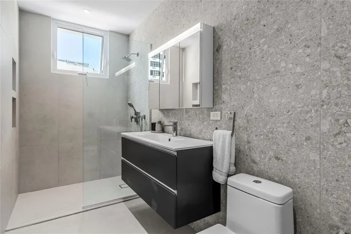 The primary suite is a private sanctuary, complete with a vanity area, a spacious walk-in closet with custom built-ins, and an en-suite bathroom featuring a large walk-in shower and separate bathtub. Each bedroom provides a serene retreat with generous proportions, ample closet space, and city or ocean views.\r\n