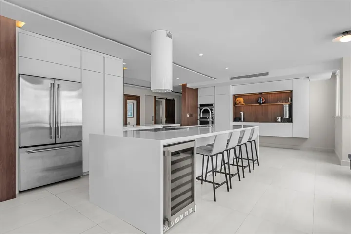 The chef’s kitchen is a centerpiece of modern design, featuring a large island, sleek countertops, high-end appliances, and custom cabinetry. It is perfect for entertaining, with ample seating and a seamless flow to the dining and living areas, all while offering views of Condado and its beaches.\r\n