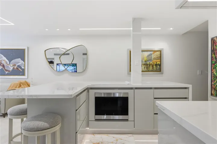 This fully remodeled two-bedroom, two-bathroom apartment showcases modern elegance with stone countertops, sleek finishes, and beautiful lighting throughout, including a thoughtfully designed bar area perfect for entertaining. Its open-concept living space flows seamlessly to a private balcony with serene north-facing water views, creating the ideal ambiance for both relaxation and social gatherings.\r\n