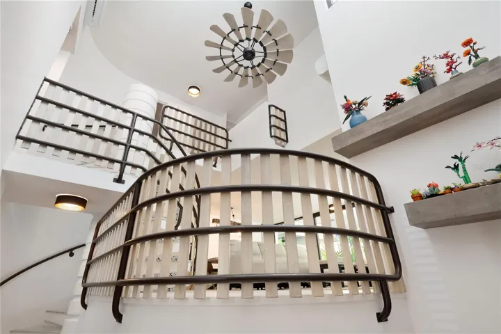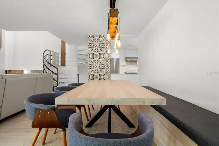 Step through the solid teak pivot door into a bright, open entry with 20-foot ceilings and a sculptural bamboo chandelier. The main level flows naturally between spaces: a welcoming bar by the entrance, a powder bath, and a full kitchen equipped with Frigidaire Professional appliances, Bosch dishwasher, Broan vented hood, and a gas range.\r\n
