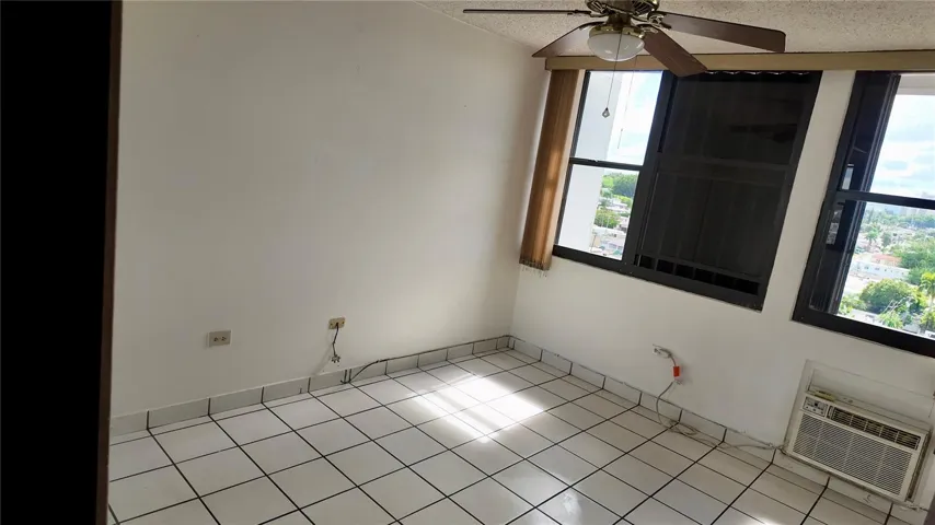 The main bedroom, significantly larger than typical units in Puerto Rico, includes a private en-suite bathroom with a bathtub, double vanity area, and large walk-in closets. The apartment is finished with tile flooring throughout, offering a clean and contemporary feel.\r\n