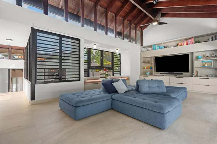 Perched high on a gentle hill, the home captures steady cross-breezes that flow freely through open spaces, offering a choice between natural ventilation and full air-conditioned comfort. Despite its openness, the elevation and site orientation ensure complete privacy: no neighboring views, only sky and green. Outdoors, landscaped terraces and travertine-style surfaces surround a redesigned saltwater pool that continues the seamless dialogue between indoors and out. Every system–from roof and wiring to generator, cistern, and A/C–was renewed as part of a complete modernization of the home, ensuring turn-key ease for the next owner. \r\n