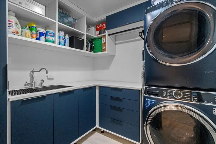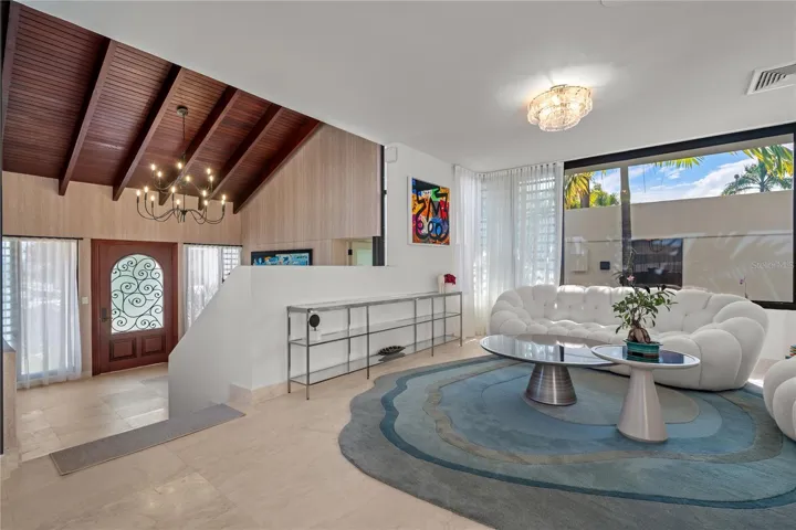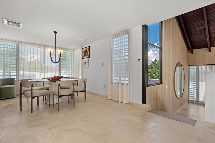 The home’s split-level plan flows naturally from a dramatic foyer into open living and dining areas, and then upward to the kitchen and family room—an airy, social heart that opens fully to the terrace through stackable glass doors. The custom Italian kitchen, designed for both beauty and function, anchors the space with sleek cabinetry, porcelain slab countertops, and premium appliances. \r\n