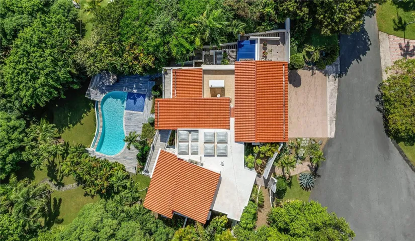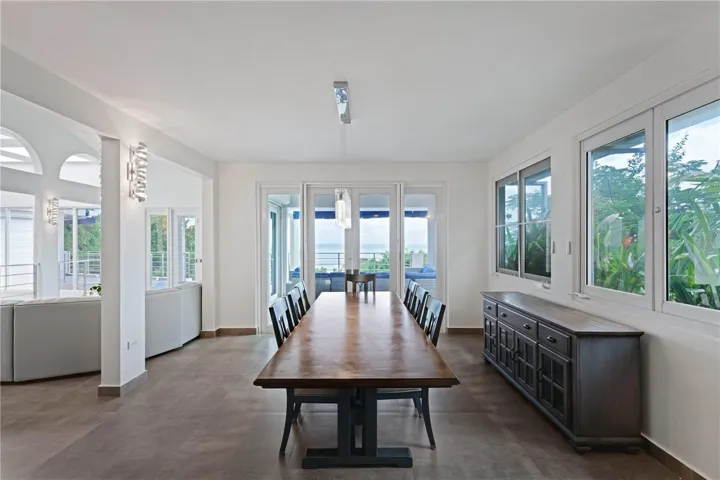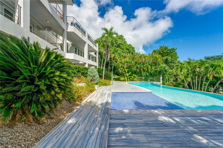 +"PublicRemarks": "Nothing short of spectacular vistas from high above the sea side cliffs of Ridge Top Road in Palmas Del Mar, at 12 Ridge Top. This slopeside estate offers 5 bedrooms, 5 full bathrooms with 2 half baths, in a custom-designed 3 story layout complete with elevator floor to rooftop. With just over 5,116 interior sq.ft of air-conditioned living and approx. 2,413 sq.ft of exterior living, this gated suburban country estate satiates the desire for both view and space. Boasting a contemporary aesthetic illuminated by warm natural light throughout, the 23’ in ceilings highlight the uniquely private nature of this highly coveted street. Serving as the perfect space for entertaining, the entry level features an oversized sitting room, powder room and guest suite, retrofitted with its own private wet bar and kitchen. On the ground floor, double sized open areas serve as combined living and dining, seamlessly connecting to the gourmet eat-in kitchen and covered terraces, affording 180 degree scenic vistas from different vantage points. 2 bedrooms, of which one offers a suite bath, and 2 powder rooms, round out this level's offerings. Affording the utmost in serenity with an indoor garden and water feature, the second floor showcases a wine cellar, laundry, ensuite guest bedroom with covered balcony, and the primary suite with walk-in closet and a spa-inspired bathroom with a terrace/outdoor shower. Outside, embrace the sun with your own private oasis. The covered patio with full bath and storage space leads out to the sizable pool, adorned by surrounding tropical foliage set on half an acre of land. A 3-car garage with approx. 619 Sq. Ft. rounds out this exceptional home. Palmas del Mar is internationally renowned for its Yacht Club & Marina, golf courses, tennis courts, equestrian center, school, restaurants, shopping venues and beachfront location on the southeast coast of the island. Only a 40-minute drive from San Juan, enjoy the effortless suburban living of the Caribbean master planned oasis."