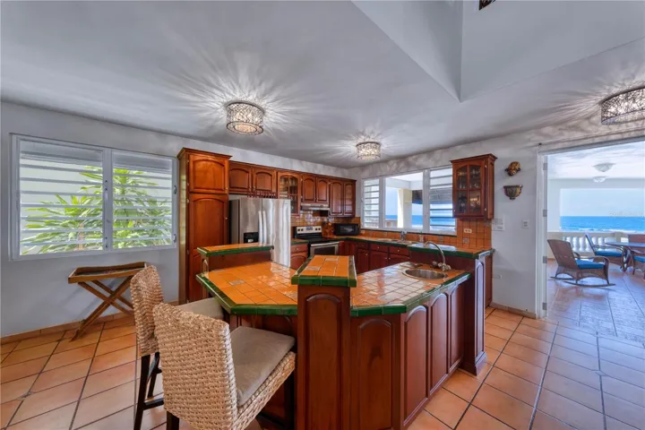 +"PublicRemarks": "Set directly above the turquoise waters of Shacks Beach, this five-bedroom, three-and-a-half-bath residence embodies the essence of refined coastal living. Blending timeless Caribbean architecture with modern amenities, it offers sweeping ocean views and two expansive terraces that capture the rhythm of the waves. The main home features three bedrooms, two full bathrooms, and a powder room. The primary suite, located on the top floor, enjoys panoramic ocean vistas, a private balcony, a generous walk-in closet, and direct access to a beautifully appointed den lined with custom wood cabinetry with the sea as your backdrop. The main living floor offers two spacious guest bedrooms, a full bath, and a powder room. The open kitchen and great room flow naturally to the terraces, inviting indoor-outdoor living at its best. A private staircase leads directly down to the sand, creating an effortless connection to one of Puerto Rico’s most beautiful beaches. On the lower level, a fully independent guest apartment includes two comfortable bedrooms, a bathroom, a full kitchen, and living-dining area, ideal for visitors or private hosting. This level also houses the temperature-controlled wine cellar and access to the two-car garage. Sustainable living is seamlessly integrated with solar panels and Tesla Powerwall batteries, ensuring energy efficiency and peace of mind. Surrounded by lush tropical vegetation, the property maintains a serene sense of privacy and natural beauty that make Isabela’s coast so sought after. From sunrise coffee on the terrace to evenings framed by ocean breezes, this Shacks Beach residence captures the quiet luxury of life lived by the sea. Located along Puerto Rico’s northwest coast, Shacks Beach is known for its pristine reefs, golden sand, and year-round breezes. A haven for divers, kite-surfers, and beach lovers alike, the area retains a quiet exclusivity while being minutes from the restaurants, boutique hotels, and art-filled streets of Isabela and Aguadilla."