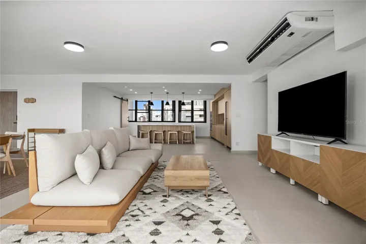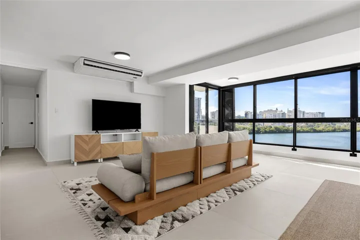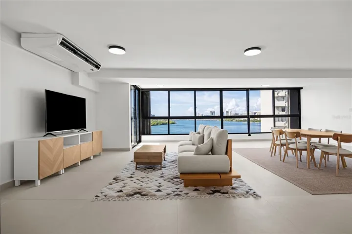 The living area is framed by custom sliding windows that open fully from end to end, allowing the tranquil and unobstructed lagoon views to become part of the interior experience. Split-unit air conditioners in every room, including the living area, ensure comfort throughout. Smart lighting, custom sun shutters, and 4x4' matte porcelain tile flooring imported from Spain complement the home’s modern ambiance.\r\n