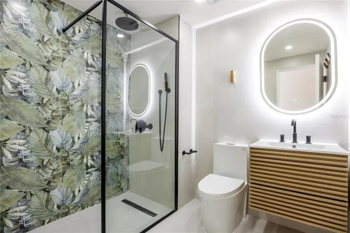 The primary suite and additional bedrooms feature custom PVC closets, offering durability and thoughtful organization. Each bathroom showcases 4x4' porcelain wall tile, accent tiles imported from Spain, Pfister rainfall and handheld showerheads, and a custom double vanity in the master suite. The building is equipped with a partial backup generator for added convenience and reliability.\r\n