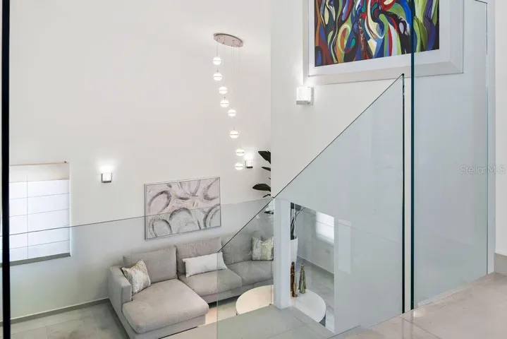On the main level, enjoy an elegant formal living room, plus a fifth bedroom currently used as a home office with tranquil views of the terrace and pool. The home’s standout feature is its sleek modern kitchen perfect for cooking enthusiast, equipped with True® luxury appliances, including a 150-bottle capacity wine wall, a clear ice maker, and a glass-door refrigerator. The Dekton countertops and backsplash are exceptional durability, high resistance to heat, stains, scratches giving confidence to those who love to cook and entertain. The kitchen island doubles as a dining bar and flows into the spacious family room, which opens directly onto the terrace through sliding glass doors — perfect for gatherings creating the ideal indoor–outdoor lifestyle.