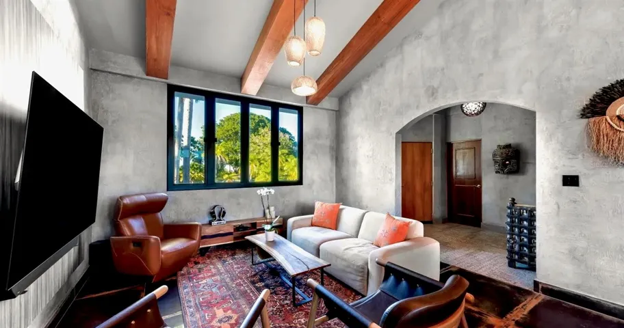 Adorned with Moroccan and boho-inspired elements, the interior is warm and visually rich. Featuring exposed beam vaulted ceilings, textured walls, wood accents, and curated furnishings. The open-concept living and dining area leads to South-facing balcony overlooking manicured tropical landscapes and golf courses. The fully equipped designer kitchen includes modern cabinetry and appliances. Both bedrooms are ensuite for privacy and comfort, with the primary suite offering a walk-in-closet, private balcony, and spa-style bath with dual vanity and jetted tub. A powder room, dedicated laundry area, and 2 reserved parking spaces add ease to everyday living. \r\n