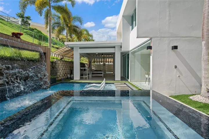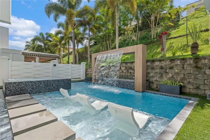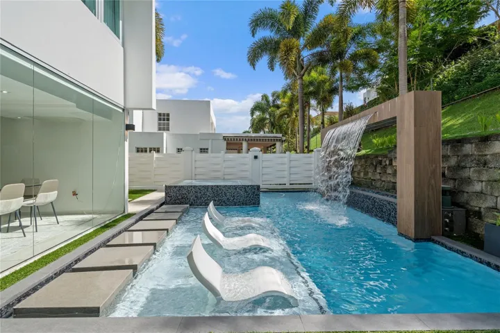 Fully remodeled and impeccably designed home in the gated community of Mansiones de Monte Verde in Cayey. This modern four bedroom residence is being sold fully furnished with high end pieces, refined finishes, and thoughtful upgrades throughout. Its striking facade features unique details that set the tone for the quality found inside. The backyard feels like a private spa retreat, complete with a sleek modern pool and a calming cascade waterfall that creates a soothing, resort style atmosphere. An outdoor kitchen and covered terrace provide the ideal setting for entertaining, dining, and unwinding year round.\r\n
