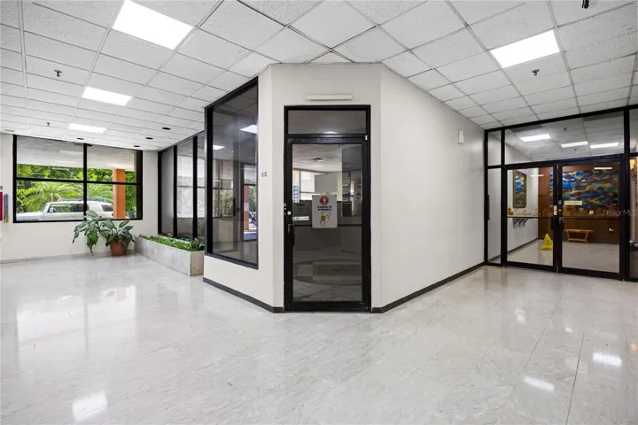 •    Reception area, office space, and two bathrooms