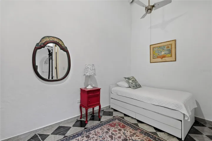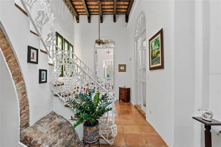 Experience the charm and elegance of Old San Juan in this extraordinary fully furnished two-story historic residence, considered one of the most beautiful homes in the area. Featuring soaring ceilings of approximately 17 feet, the home offers a dramatic sense of space and natural light, showcasing timeless Spanish architectural details throughout. The first floor features elegant marble floors, while the second-floor bedrooms also offer marble flooring, complemented by warm wood floors in the second-floor living areas. The residence has been thoughtfully renovated with an updated kitchen and bathrooms, polished floors, and modern comforts seamlessly integrated into its historic design. A unique interior patio, enclosed with acrylic panels, allows year-round enjoyment while expanding the interior living space. The home also boasts a huge private terrace, ideal for outdoor living and entertaining. Located just a few houses from the Governor’s residence, the property offers a highly secure and protected setting, while remaining steps from plazas, cafés, restaurants, and cultural landmarks—providing a rare opportunity to enjoy privacy, beauty, and convenience in the heart of Old San Juan.