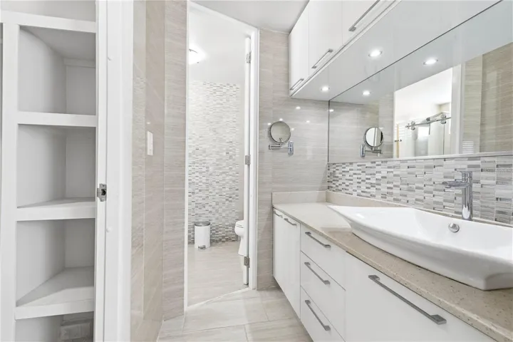 The property also includes security and technology upgrades such as outdoor security cameras, Ring doorbell, ADT security system, and a home network system with multiple routers for strong connectivity throughout the home. Additional features include ceiling fans, custom closets, terrace shades, and a reverse osmosis water filtration system in the kitchen.